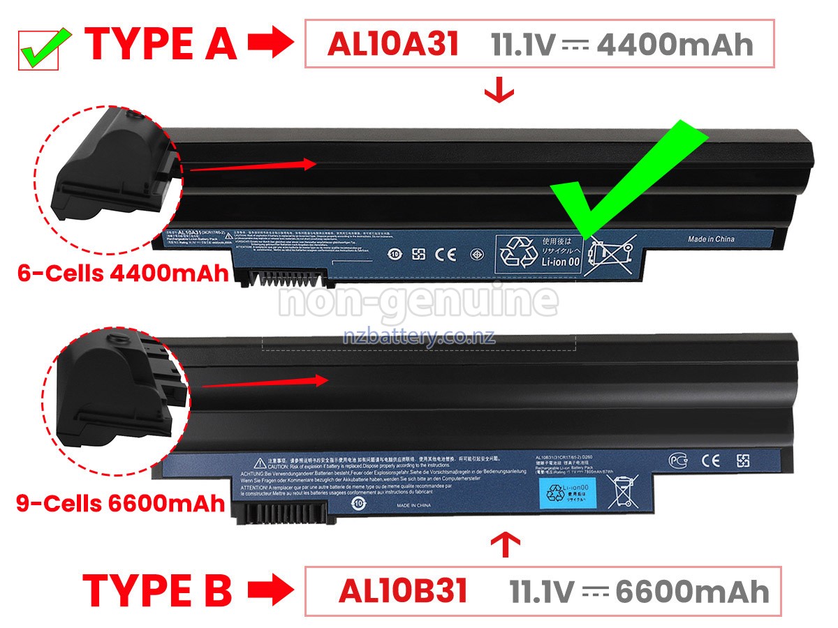 There are few differences except that our battery has no brand label. All rechargeable batteries available at Nzbattery.co.nz are original manufacturers' backup batteries. They use the same smart chips and cells as original's, so the performance and compatibility of Acer Aspire One AOD255 battery are similar or even better than the original rechargeable battery. This will deduct the brand premium while maintaining quality. Many consumers think that the performance of the original battery is better. In fact, many branded laptop batteries are also manufactured by components from third parties (such as Samsung, LG, etc.). Just as the laptop CPU is not developed by a brand computer company itself.