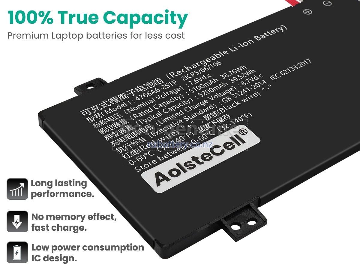 Our new AolsteCell 4766A6-2S1P replacement battery is made of the best battery cells and components. The batteries for AolsteCell 4766A6-2S1P supplied on the site nzbattery.co.nz are all passed the tests of UN38.3 and RCM, CE, UL, ROHS, ISO9001/ISO9002 and other international identification. To maximize decrease the risk of potential safety hazards, ensure the good experience of the users, our AolsteCell 4766A6-2S1P notebook batteries were incorporated protection measures as well. E.g, protection of temperature, circuit, Rests, over-voltage, hardware, output current limiting threshold, input and overcharge.