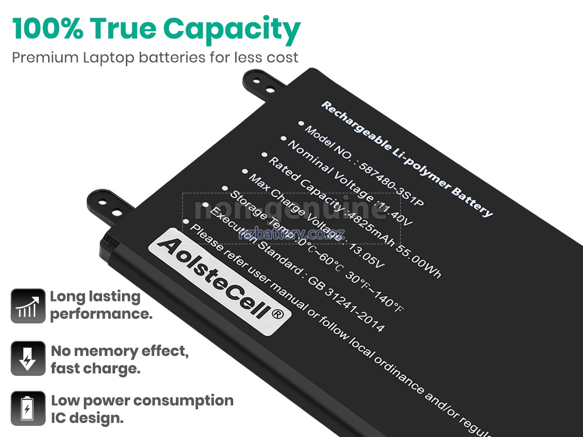 Our new AolsteCell 587480-3S1P replacement battery is made of the best battery cells and components. The batteries for AolsteCell 587480-3S1P supplied on the site nzbattery.co.nz are all passed the tests of UN38.3 and RCM, CE, UL, ROHS, ISO9001/ISO9002 and other international identification. To maximize decrease the risk of potential safety hazards, ensure the good experience of the users, our AolsteCell 587480-3S1P notebook batteries were incorporated protection measures as well. E.g, protection of temperature, circuit, Rests, over-voltage, hardware, output current limiting threshold, input and overcharge.