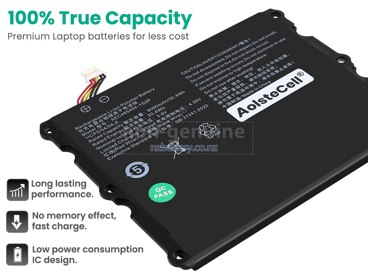 Our new AolsteCell AEC485494-1S2P replacement battery is made of the best battery cells and components. The batteries for AolsteCell AEC485494-1S2P supplied on the site nzbattery.co.nz are all passed the tests of UN38.3 and RCM, CE, UL, ROHS, ISO9001/ISO9002 and other international identification. To maximize decrease the risk of potential safety hazards, ensure the good experience of the users, our AolsteCell AEC485494-1S2P notebook batteries were incorporated protection measures as well. E.g, protection of temperature, circuit, Rests, over-voltage, hardware, output current limiting threshold, input and overcharge.