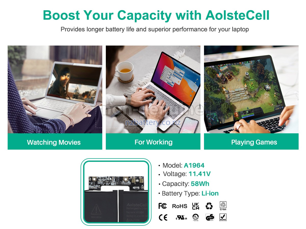 Our new Apple 616-00419 replacement battery is made of the best battery cells and components. The batteries for Apple 616-00419 supplied on the site nzbattery.co.nz are all passed the tests of UN38.3 and RCM, CE, UL, ROHS, ISO9001/ISO9002 and other international identification. To maximize decrease the risk of potential safety hazards, ensure the good experience of the users, our Apple 616-00419 notebook batteries were incorporated protection measures as well. E.g, protection of temperature, circuit, Rests, over-voltage, hardware, output current limiting threshold, input and overcharge.