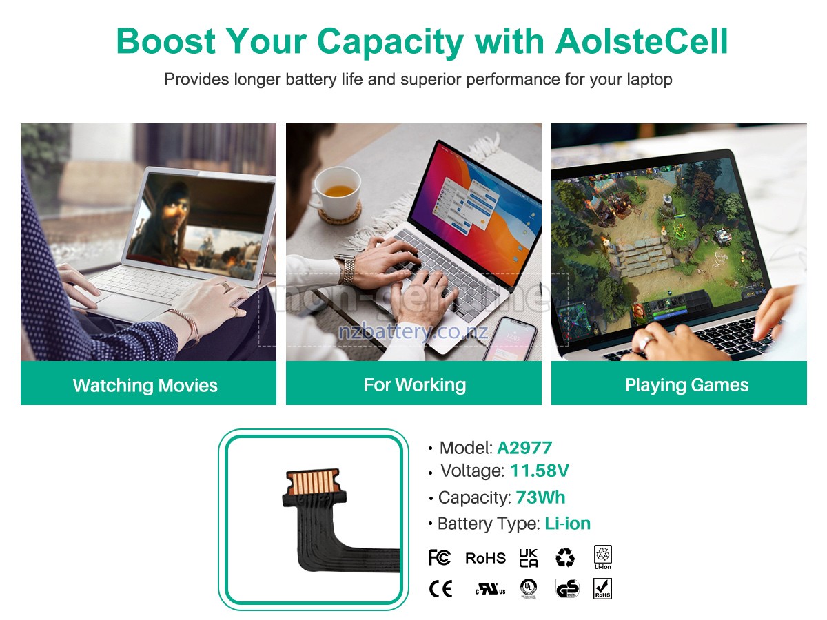 Our new Apple MacBook Pro M3 MAX 16 CPU 40 GPU 14-inch A2992 replacement battery is made of the best battery cells and components. The batteries for Apple MacBook Pro M3 MAX 16 CPU 40 GPU 14-inch A2992 supplied on the site nzbattery.co.nz are all passed the tests of UN38.3 and RCM, CE, UL, ROHS, ISO9001/ISO9002 and other international identification. To maximize decrease the risk of potential safety hazards, ensure the good experience of the users, our Apple MacBook Pro M3 MAX 16 CPU 40 GPU 14-inch A2992 notebook batteries were incorporated protection measures as well. E.g, protection of temperature, circuit, Rests, over-voltage, hardware, output current limiting threshold, input and overcharge.