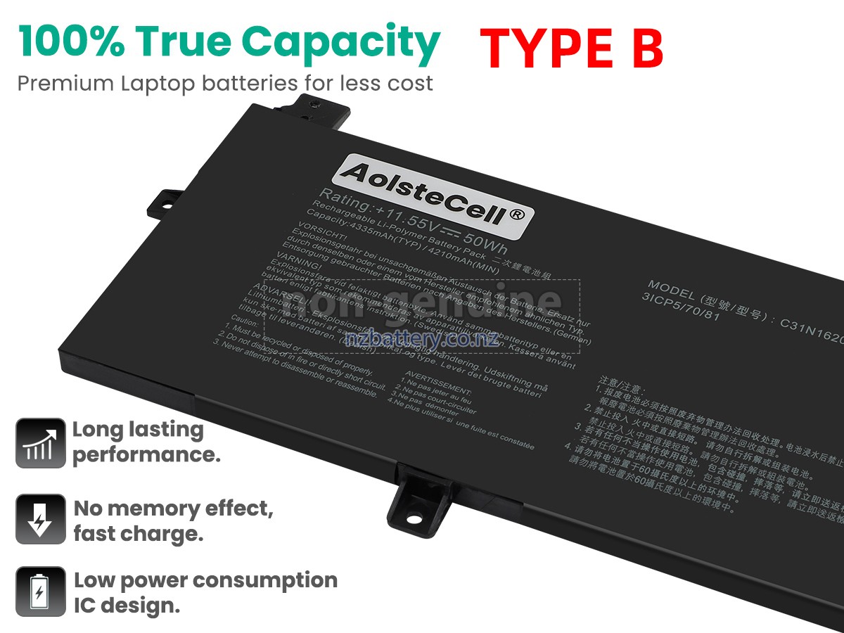 There are 2 types battery (Type A and Type B are incompatible), please open your laptop to check your old battery's connector position (on left or on right) first before placing an order, ensure order one correct battery. If your laptop model is [ B5440, P5240, P5340, P5440, PU404 ] please order this battery. Our new Asus C31N1620 replacement battery is made of the best battery cells and components. The batteries for Asus C31N1620 supplied on the site nzbattery.co.nz are all passed the tests of UN38.3 and RCM, CE, UL, ROHS, ISO9001/ISO9002 and other international identification. To maximize decrease the risk of potential safety hazards, ensure the good experience of the users, our Asus C31N1620 notebook batteries were incorporated protection measures as well. E.g, protection of temperature, circuit, Rests, over-voltage, hardware, output current limiting threshold, input and overcharge.