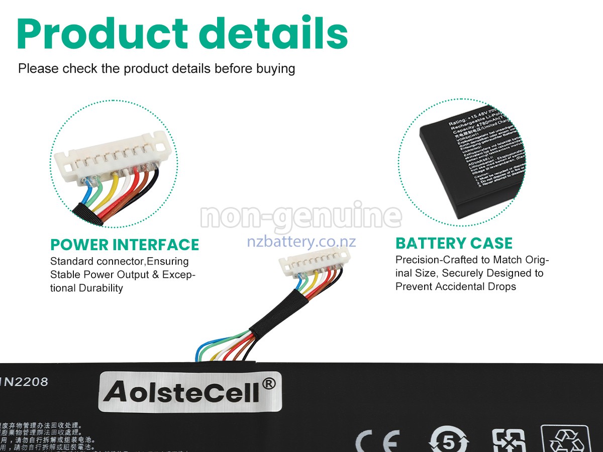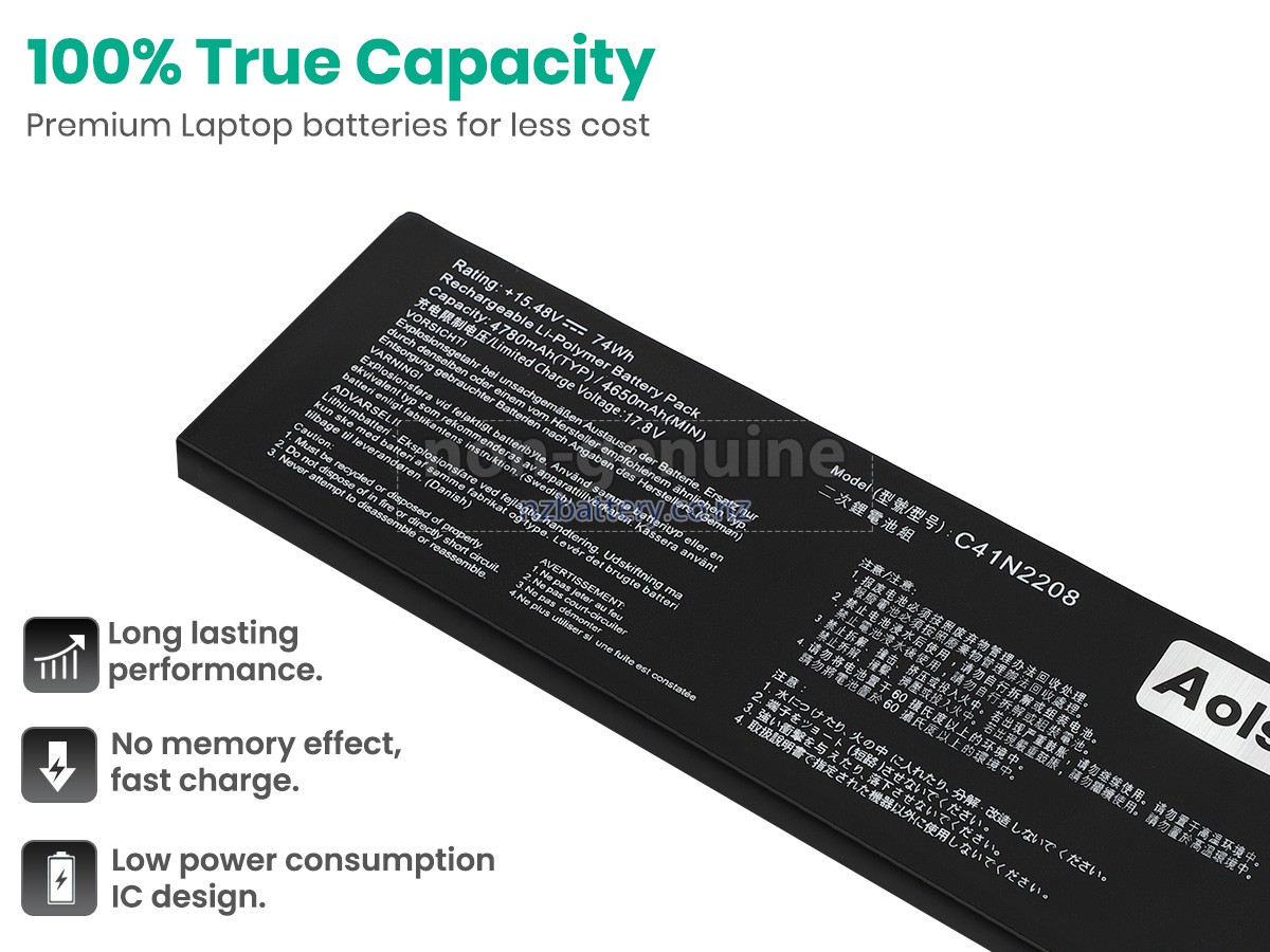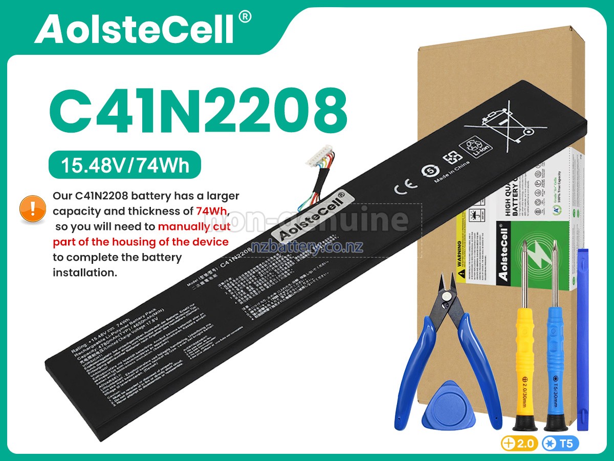 Our C41N2208 battery has a larger capacity and thickness of 74wh, so you will need to manually cut part of the housing of the device to complete the battery installation. Our new Asus RC71L-NH002W replacement battery is made of the best battery cells and components. The batteries for Asus RC71L-NH002W supplied on the site nzbattery.co.nz are all passed the tests of UN38.3 and RCM, CE, UL, ROHS, ISO9001/ISO9002 and other international identification. To maximize decrease the risk of potential safety hazards, ensure the good experience of the users, our Asus RC71L-NH002W notebook batteries were incorporated protection measures as well. E.g, protection of temperature, circuit, Rests, over-voltage, hardware, output current limiting threshold, input and overcharge.