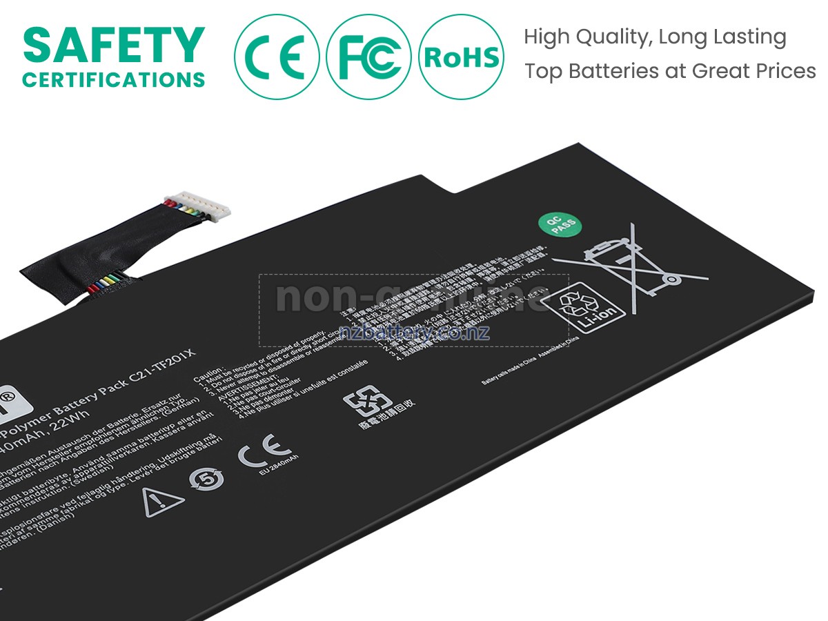 Our new Asus TF300T replacement battery is made of the best battery cells and components. The batteries for Asus TF300T supplied on the site nzbattery.co.nz are all passed the tests of UN38.3 and RCM, CE, UL, ROHS, ISO9001/ISO9002 and other international identification. To maximize decrease the risk of potential safety hazards, ensure the good experience of the users, our Asus TF300T notebook batteries were incorporated protection measures as well. E.g, protection of temperature, circuit, Rests, over-voltage, hardware, output current limiting threshold, input and overcharge.