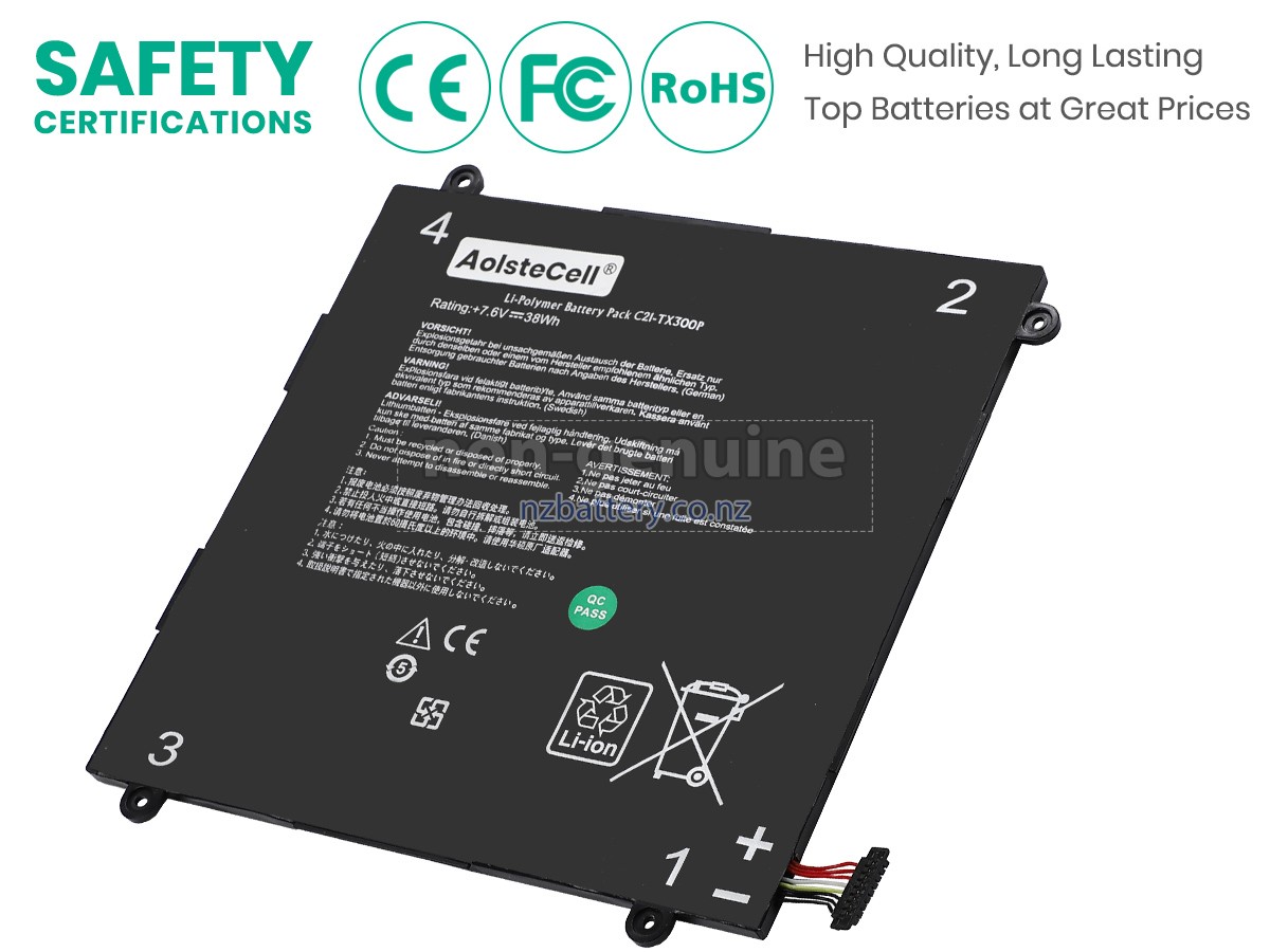 Our new Asus Transformer Book TX300 replacement battery is made of the best battery cells and components. The batteries for Asus Transformer Book TX300 supplied on the site nzbattery.co.nz are all passed the tests of UN38.3 and RCM, CE, UL, ROHS, ISO9001/ISO9002 and other international identification. To maximize decrease the risk of potential safety hazards, ensure the good experience of the users, our Asus Transformer Book TX300 notebook batteries were incorporated protection measures as well. E.g, protection of temperature, circuit, Rests, over-voltage, hardware, output current limiting threshold, input and overcharge.
