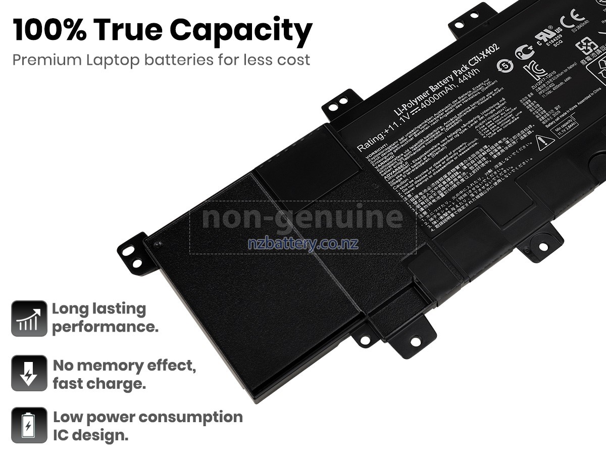 Our new Asus X402CA replacement battery is made of the best battery cells and components. The batteries for Asus X402CA supplied on the site nzbattery.co.nz are all passed the tests of UN38.3 and RCM, CE, UL, ROHS, ISO9001/ISO9002 and other international identification. To maximize decrease the risk of potential safety hazards, ensure the good experience of the users, our Asus X402CA notebook batteries were incorporated protection measures as well. E.g, protection of temperature, circuit, Rests, over-voltage, hardware, output current limiting threshold, input and overcharge.