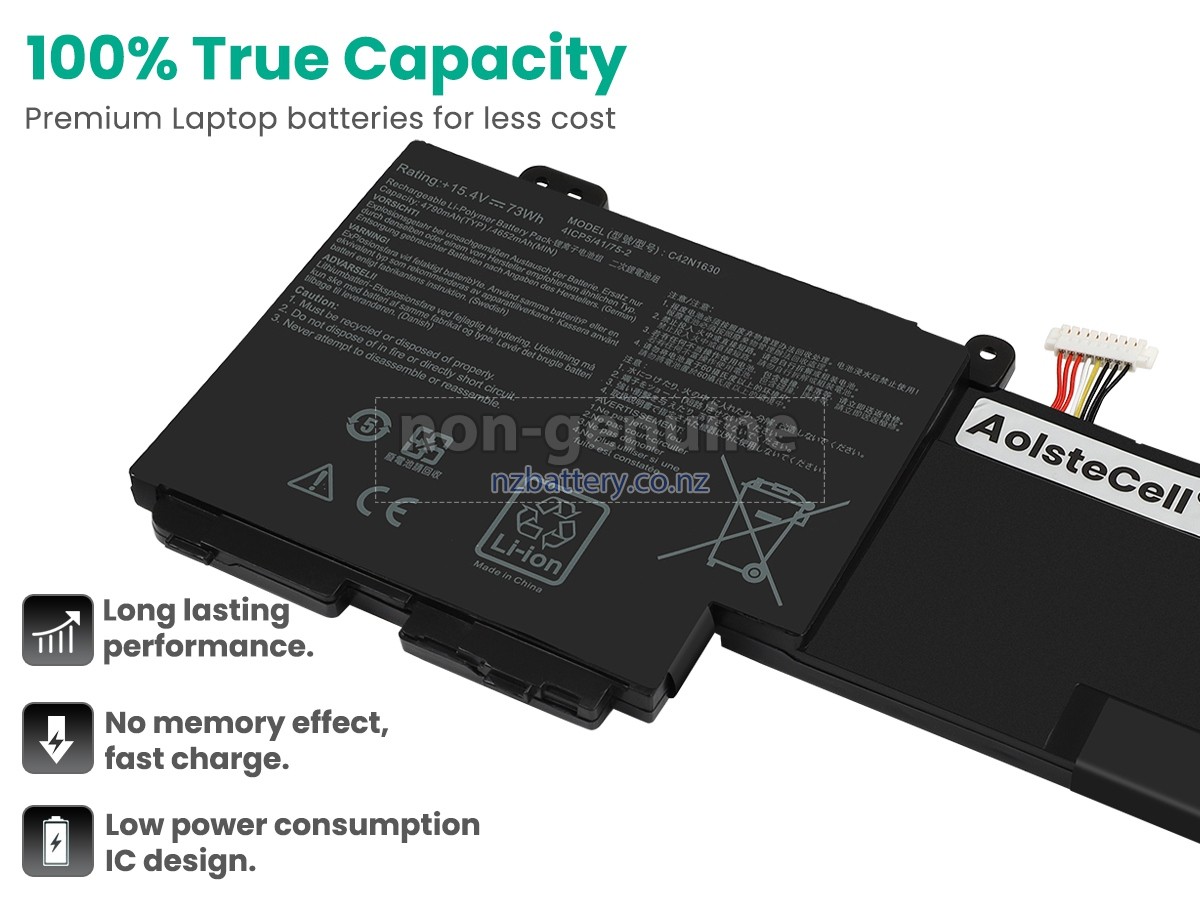 Our new Asus ZenBook Pro UX550VD-E2147T replacement battery is made of the best battery cells and components. The batteries for Asus ZenBook Pro UX550VD-E2147T supplied on the site nzbattery.co.nz are all passed the tests of UN38.3 and RCM, CE, UL, ROHS, ISO9001/ISO9002 and other international identification. To maximize decrease the risk of potential safety hazards, ensure the good experience of the users, our Asus ZenBook Pro UX550VD-E2147T notebook batteries were incorporated protection measures as well. E.g, protection of temperature, circuit, Rests, over-voltage, hardware, output current limiting threshold, input and overcharge.