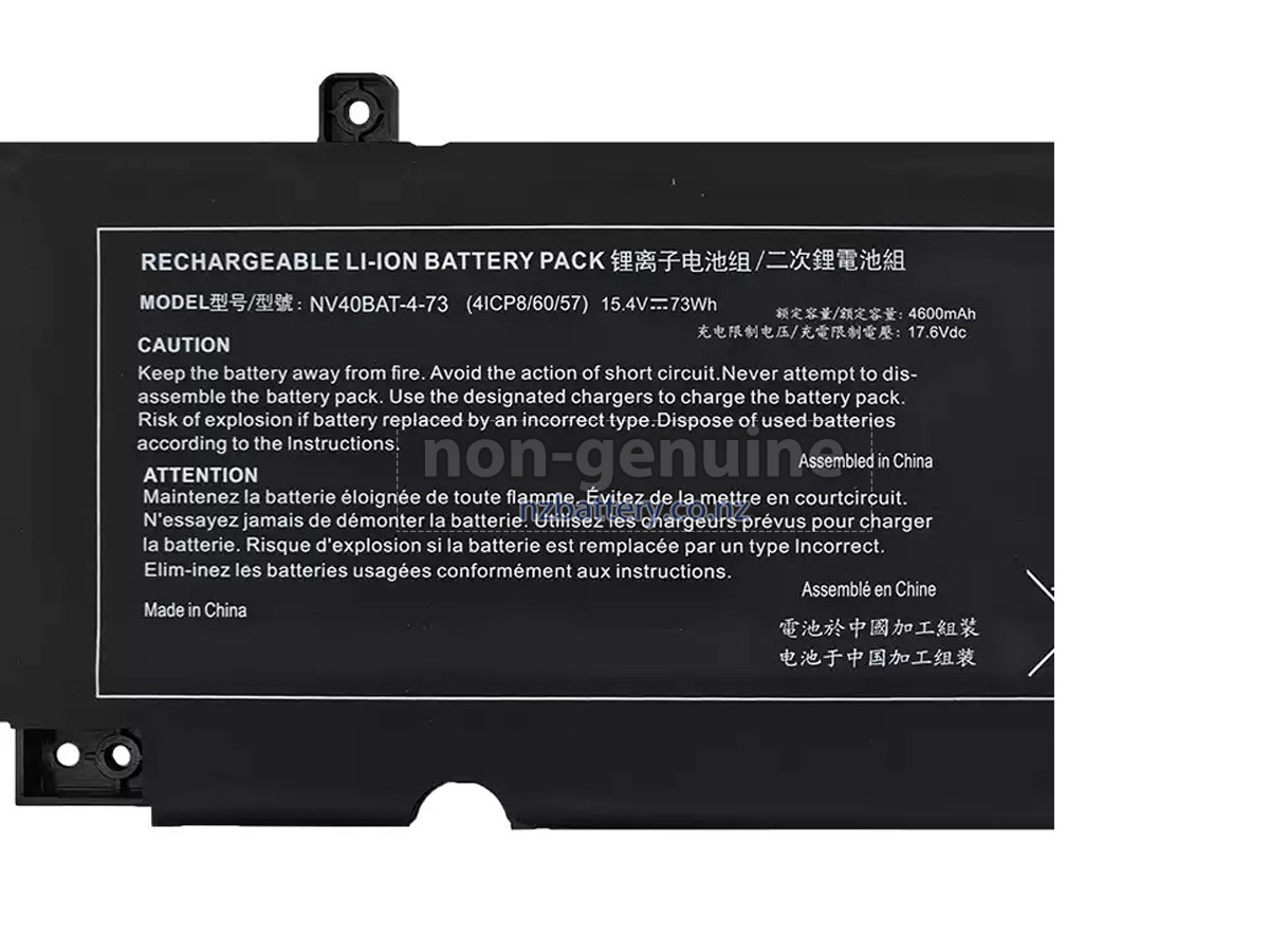 Our new Clevo 6-87-NV4RS-74M00 replacement battery is made of the best battery cells and components. The batteries for Clevo 6-87-NV4RS-74M00 supplied on the site nzbattery.co.nz are all passed the tests of UN38.3 and RCM, CE, UL, ROHS, ISO9001/ISO9002 and other international identification. To maximize decrease the risk of potential safety hazards, ensure the good experience of the users, our Clevo 6-87-NV4RS-74M00 notebook batteries were incorporated protection measures as well. E.g, protection of temperature, circuit, Rests, over-voltage, hardware, output current limiting threshold, input and overcharge.