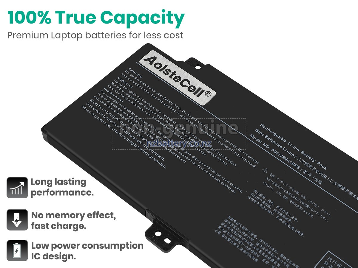 Our new Dynabook PS0122NA1BRS replacement battery is made of the best battery cells and components. The batteries for Dynabook PS0122NA1BRS supplied on the site nzbattery.co.nz are all passed the tests of UN38.3 and RCM, CE, UL, ROHS, ISO9001/ISO9002 and other international identification. To maximize decrease the risk of potential safety hazards, ensure the good experience of the users, our Dynabook PS0122NA1BRS notebook batteries were incorporated protection measures as well. E.g, protection of temperature, circuit, Rests, over-voltage, hardware, output current limiting threshold, input and overcharge.