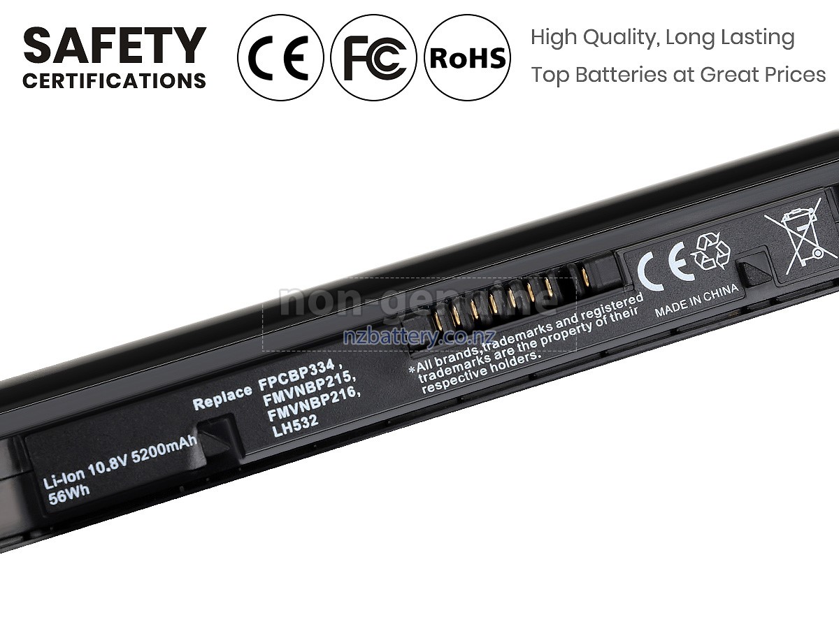 Our new Fujitsu FMVNBP216 replacement battery is made of the best battery cells and components. The batteries for Fujitsu FMVNBP216 supplied on the site nzbattery.co.nz are all passed the tests of UN38.3 and RCM, CE, UL, ROHS, ISO9001/ISO9002 and other international identification. To maximize decrease the risk of potential safety hazards, ensure the good experience of the users, our Fujitsu FMVNBP216 notebook batteries were incorporated protection measures as well. E.g, protection of temperature, circuit, Rests, over-voltage, hardware, output current limiting threshold, input and overcharge.