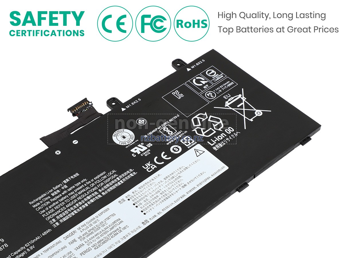 Our new Lenovo ThinkPad X13S GEN 1-21BX000TMD replacement battery is made of the best battery cells and components. The batteries for Lenovo ThinkPad X13S GEN 1-21BX000TMD supplied on the site nzbattery.co.nz are all passed the tests of UN38.3 and RCM, CE, UL, ROHS, ISO9001/ISO9002 and other international identification. To maximize decrease the risk of potential safety hazards, ensure the good experience of the users, our Lenovo ThinkPad X13S GEN 1-21BX000TMD notebook batteries were incorporated protection measures as well. E.g, protection of temperature, circuit, Rests, over-voltage, hardware, output current limiting threshold, input and overcharge.