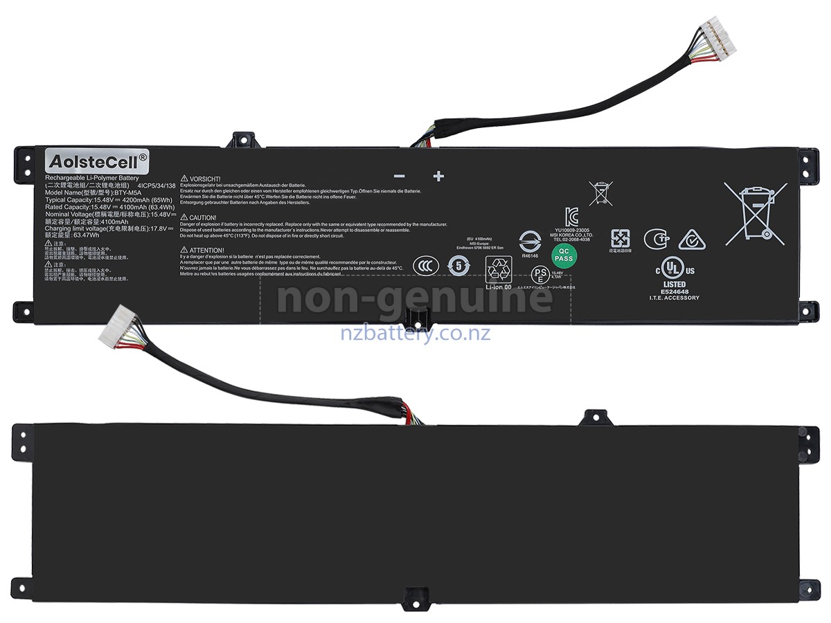 Our new MSI SWORD 16 HX B14VFKG-242TH replacement battery is made of the best battery cells and components. The batteries for MSI SWORD 16 HX B14VFKG-242TH supplied on the site nzbattery.co.nz are all passed the tests of UN38.3 and RCM, CE, UL, ROHS, ISO9001/ISO9002 and other international identification. To maximize decrease the risk of potential safety hazards, ensure the good experience of the users, our MSI SWORD 16 HX B14VFKG-242TH notebook batteries were incorporated protection measures as well. E.g, protection of temperature, circuit, Rests, over-voltage, hardware, output current limiting threshold, input and overcharge.