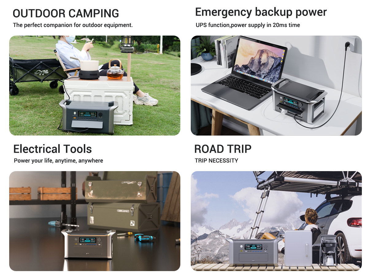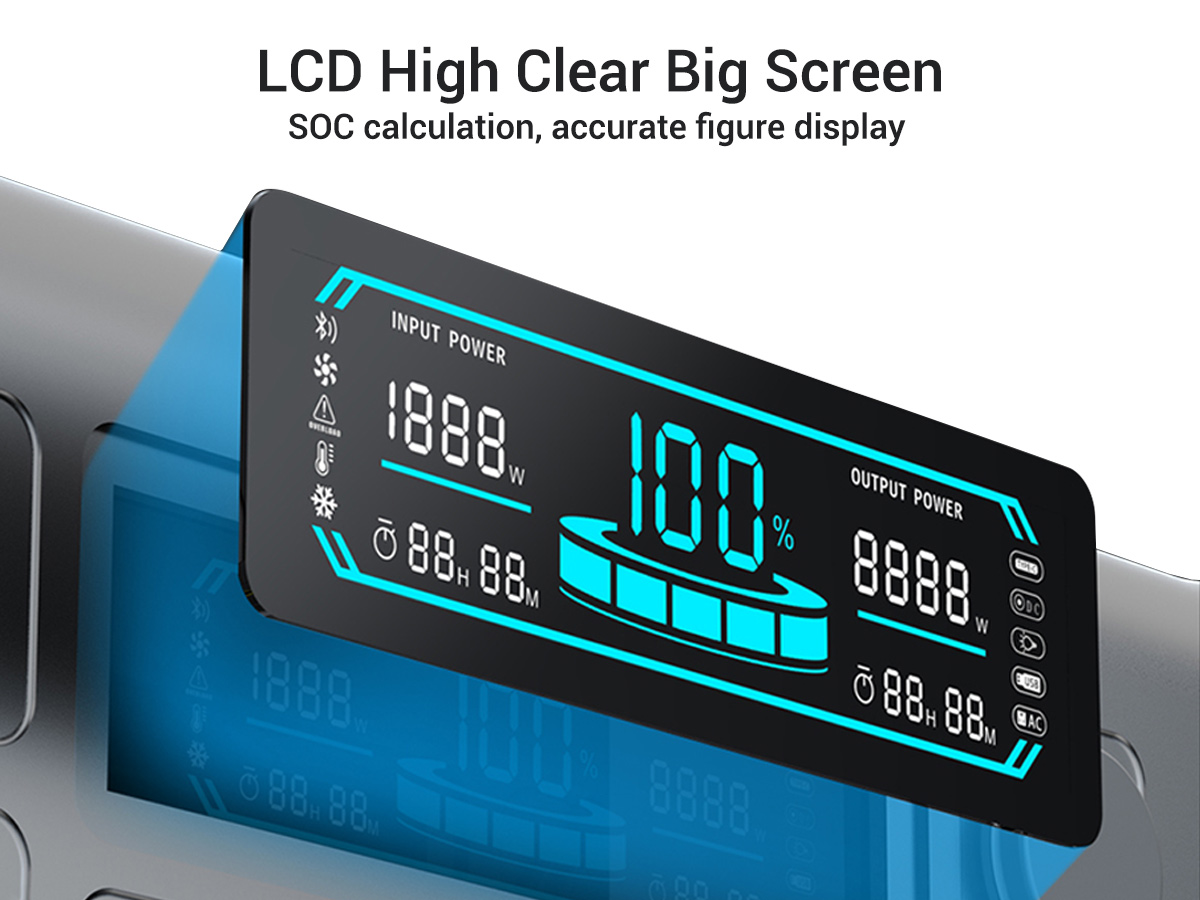 Our portable power station for Apower1000 boasts an impressive AC output of 1800W (220V) or 1600W (110V), providing flexibility to power a wide range of devices and appliances. Additionally, it offers a powerful DC output of 12V18A/200W Max, making it suitable for various applications. This versatility ensures that all your power needs are met efficiently and reliably.