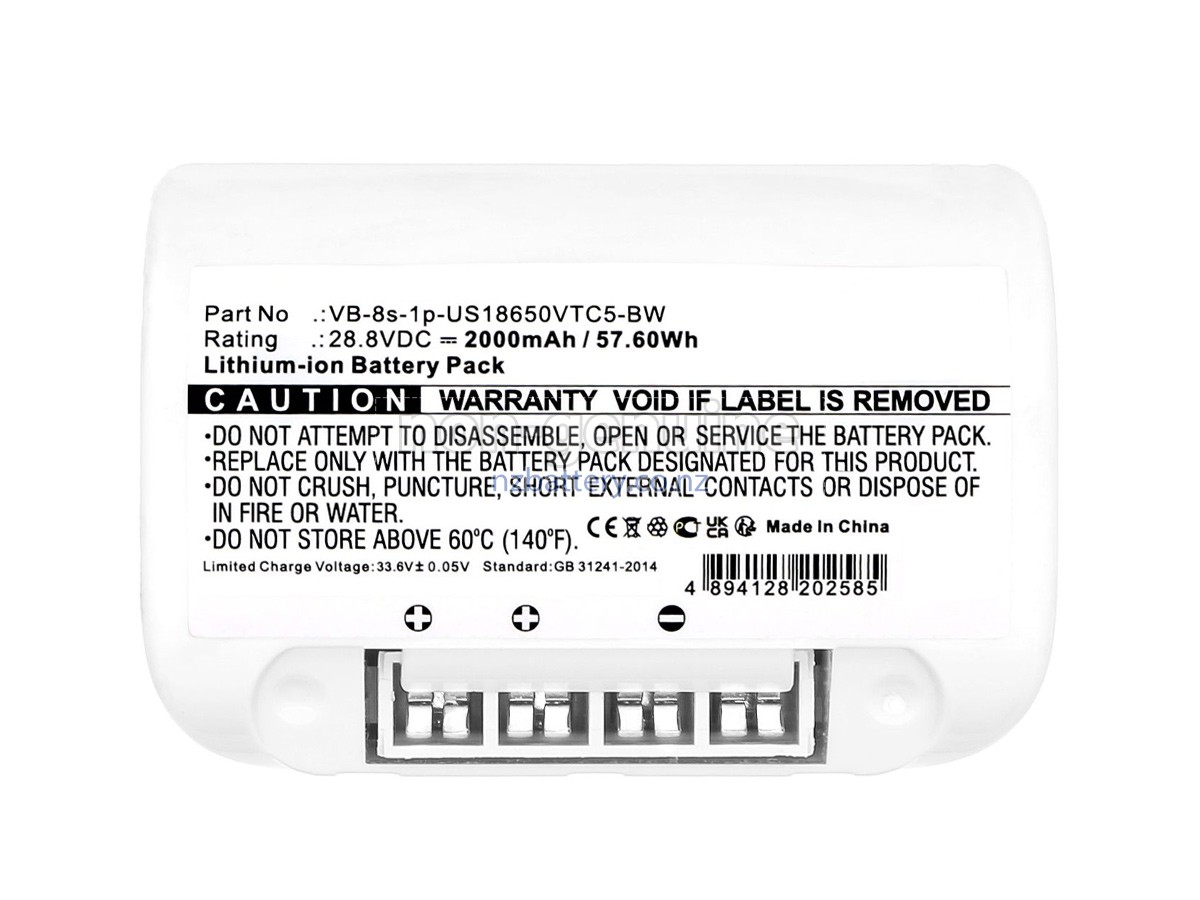 Our new Vorwerk Kobold VB-8S1P-INR1865025R-BW replacement battery is made of the best battery cells and components. The batteries for Vorwerk Kobold VB-8S1P-INR1865025R-BW supplied on the site nzbattery.co.nz are all passed the tests of UN38.3 and RCM, CE, UL, ROHS, ISO9001/ISO9002 and other international identification. To maximize decrease the risk of potential safety hazards, ensure the good experience of the users, our Vorwerk Kobold VB-8S1P-INR1865025R-BW vacuum cleaner batteries were incorporated protection measures as well. E.g, protection of temperature, circuit, Rests, over-voltage, hardware, output current limiting threshold, input and overcharge.